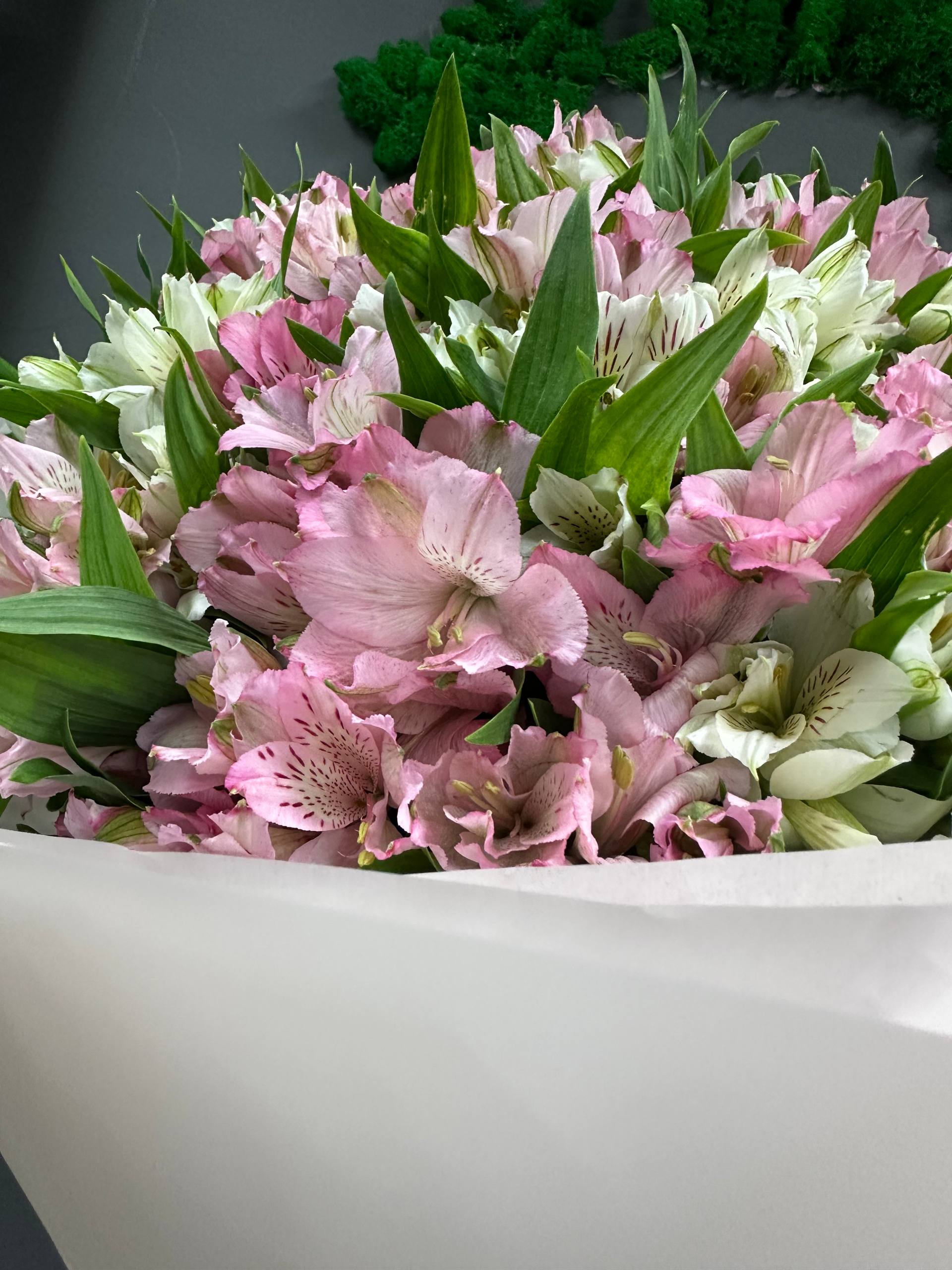 Букет микс из 101 белой и розовой альстромерии