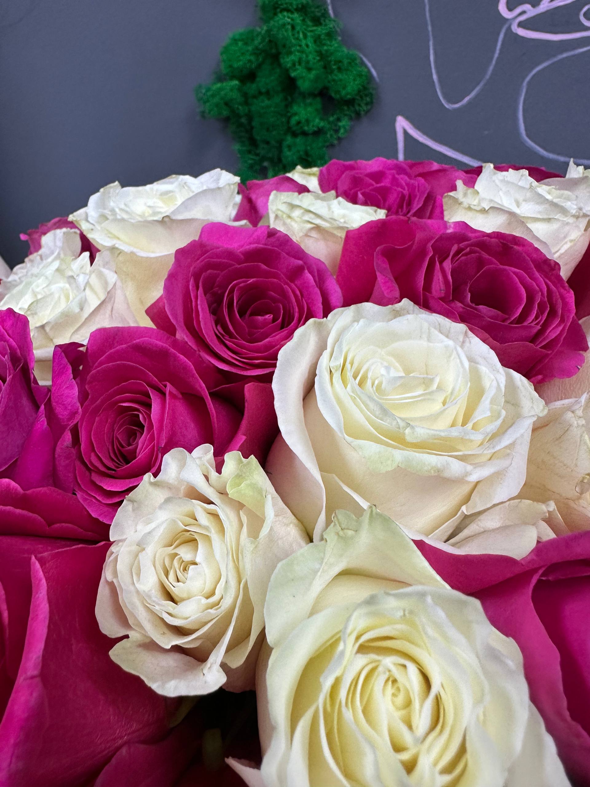 Букет микс из 101 премиальной белой и розовой розы