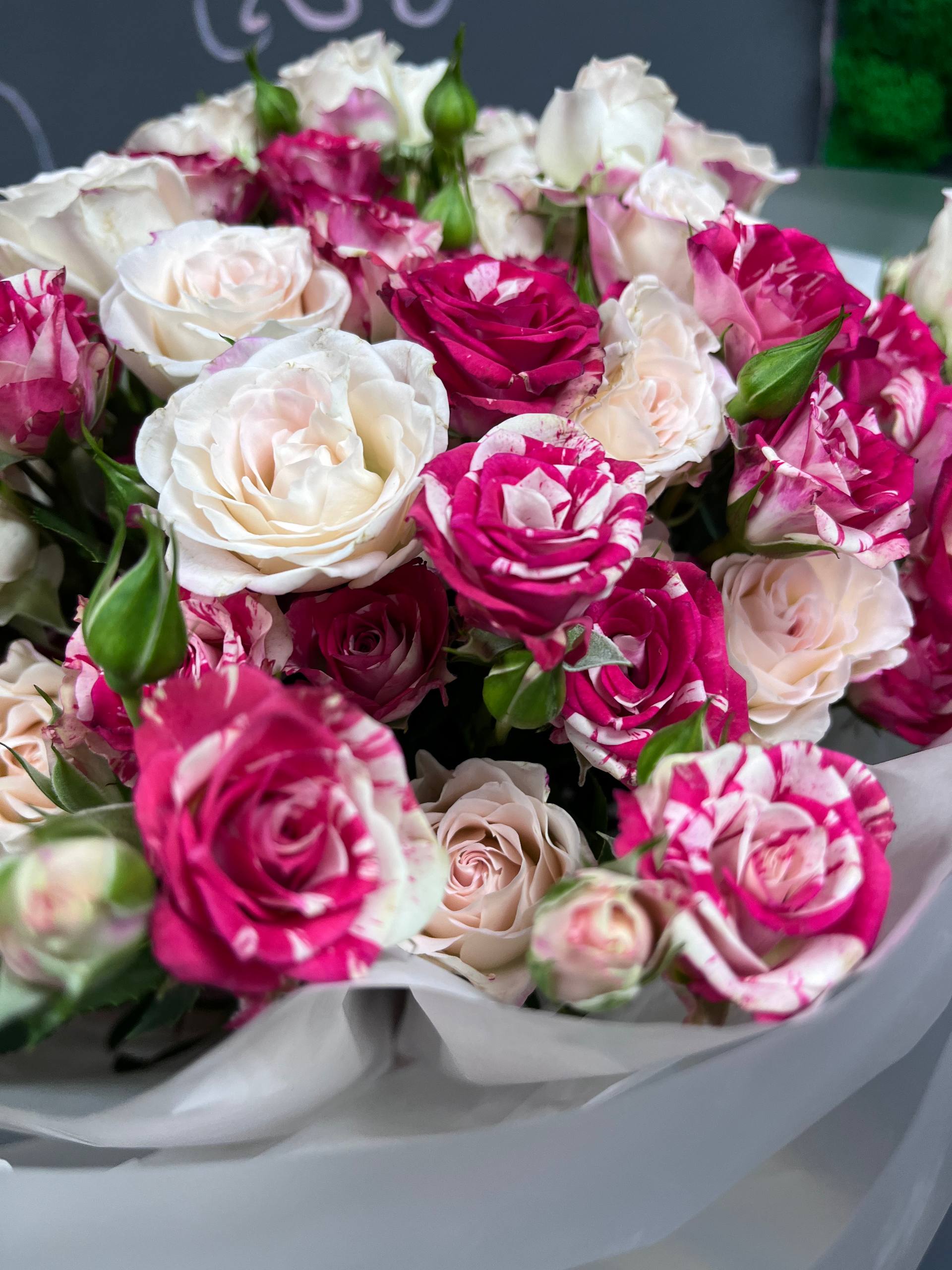 Букет микс из 15 кустовых роз Reflex и Fireworks