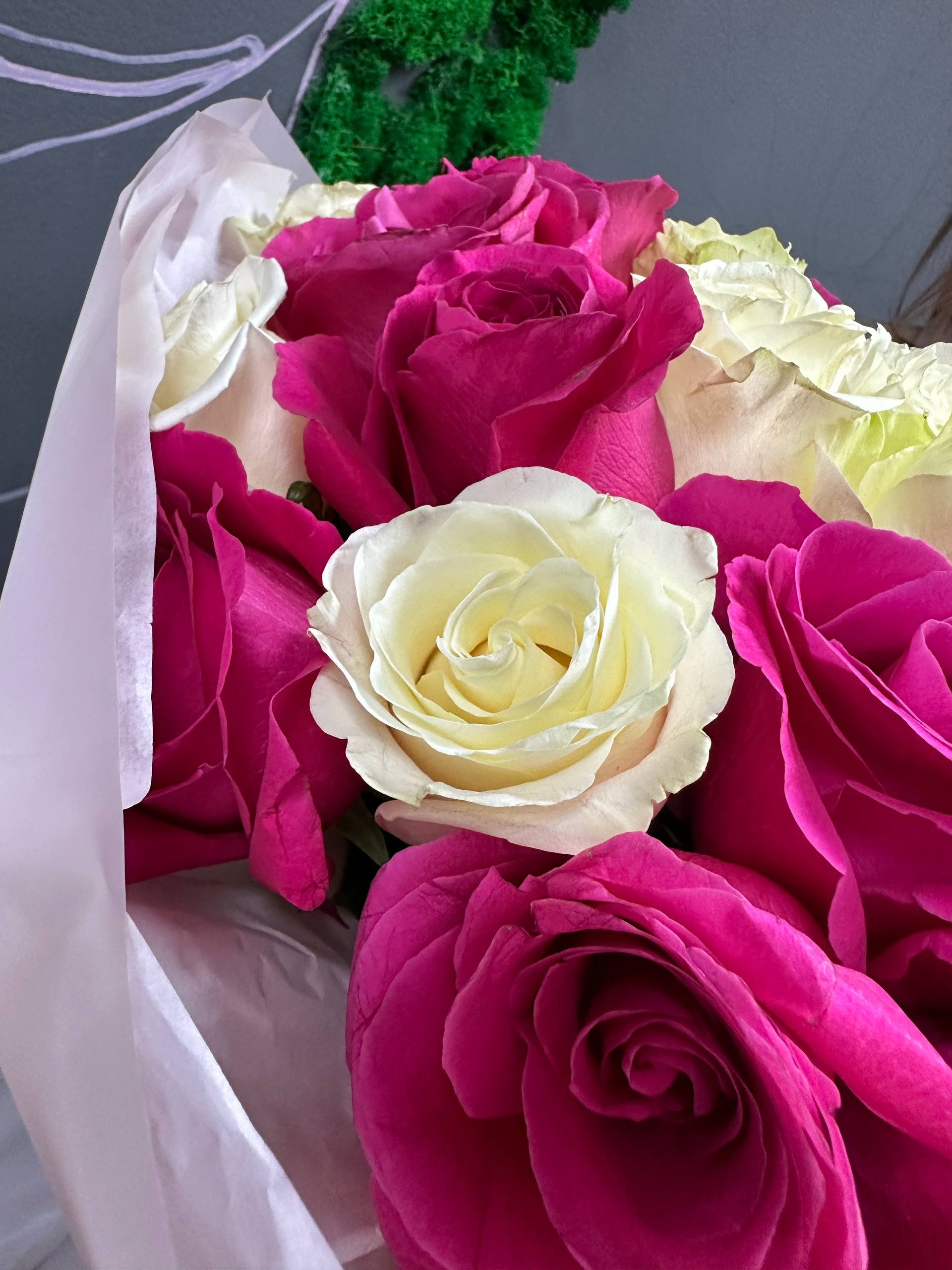 Букет микс из 51 премиальных белых и розовых роз
