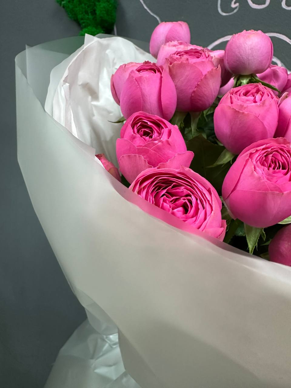 Букет из 11 веток пионовидной кустовой розы Giselle